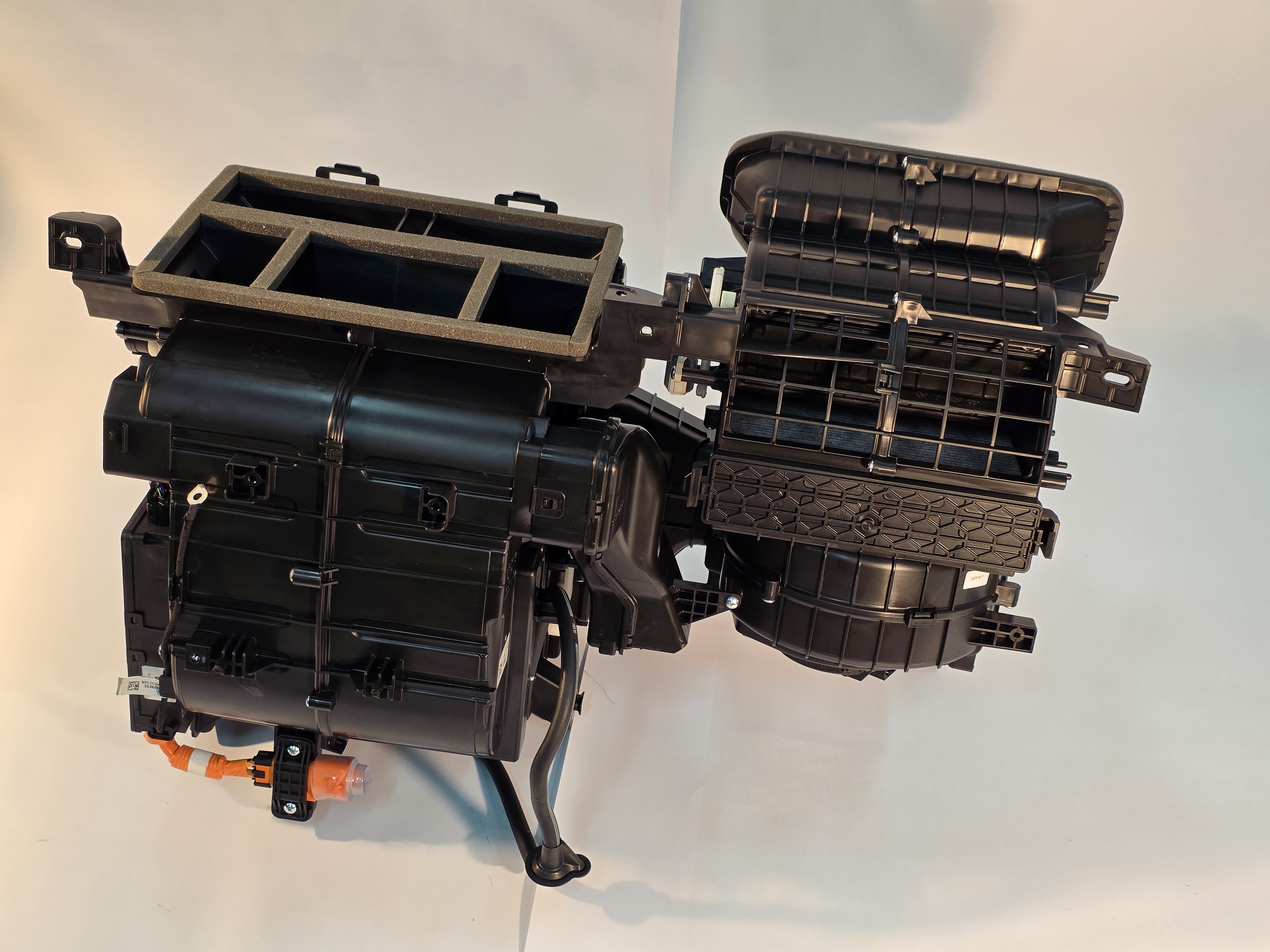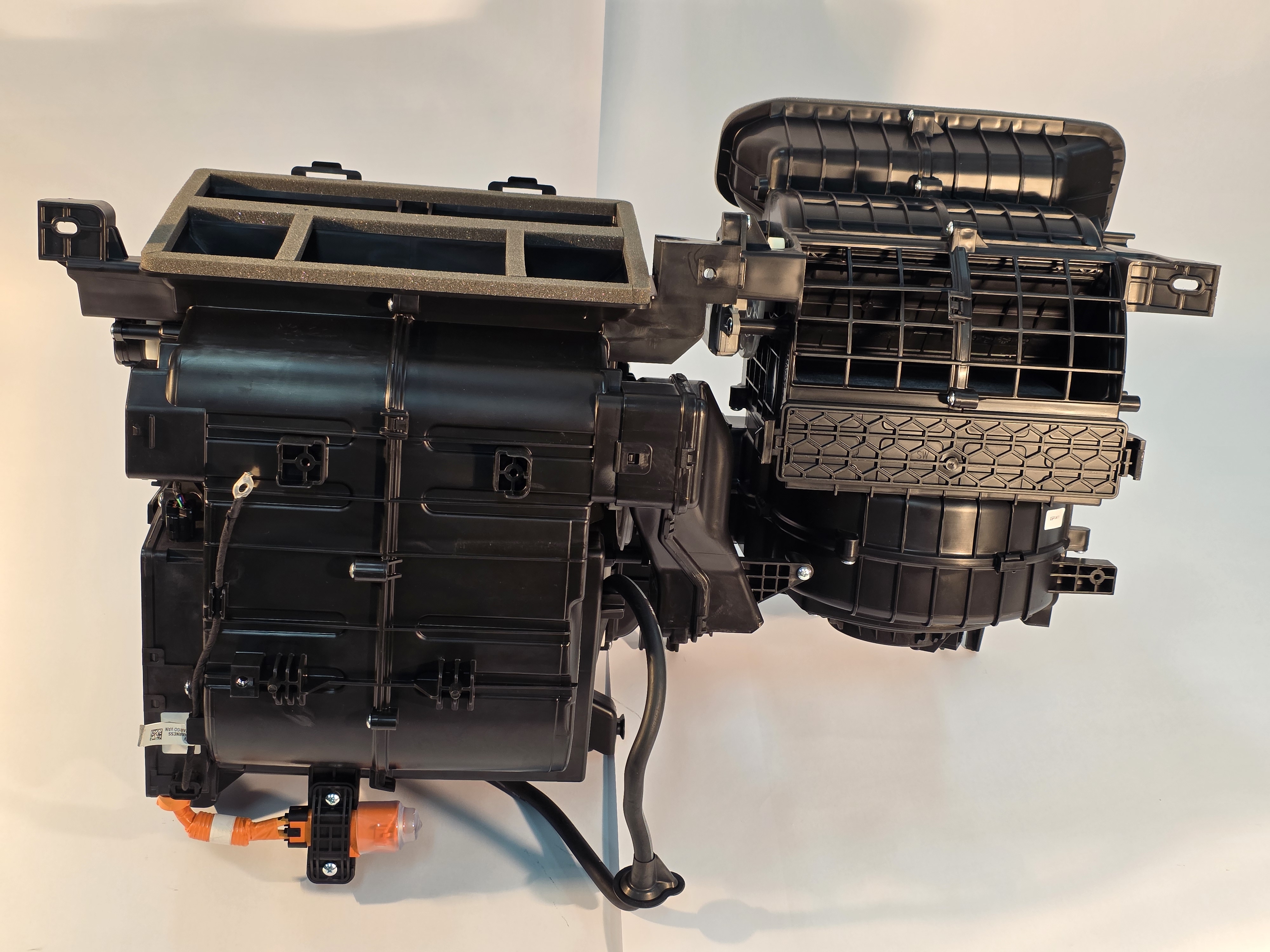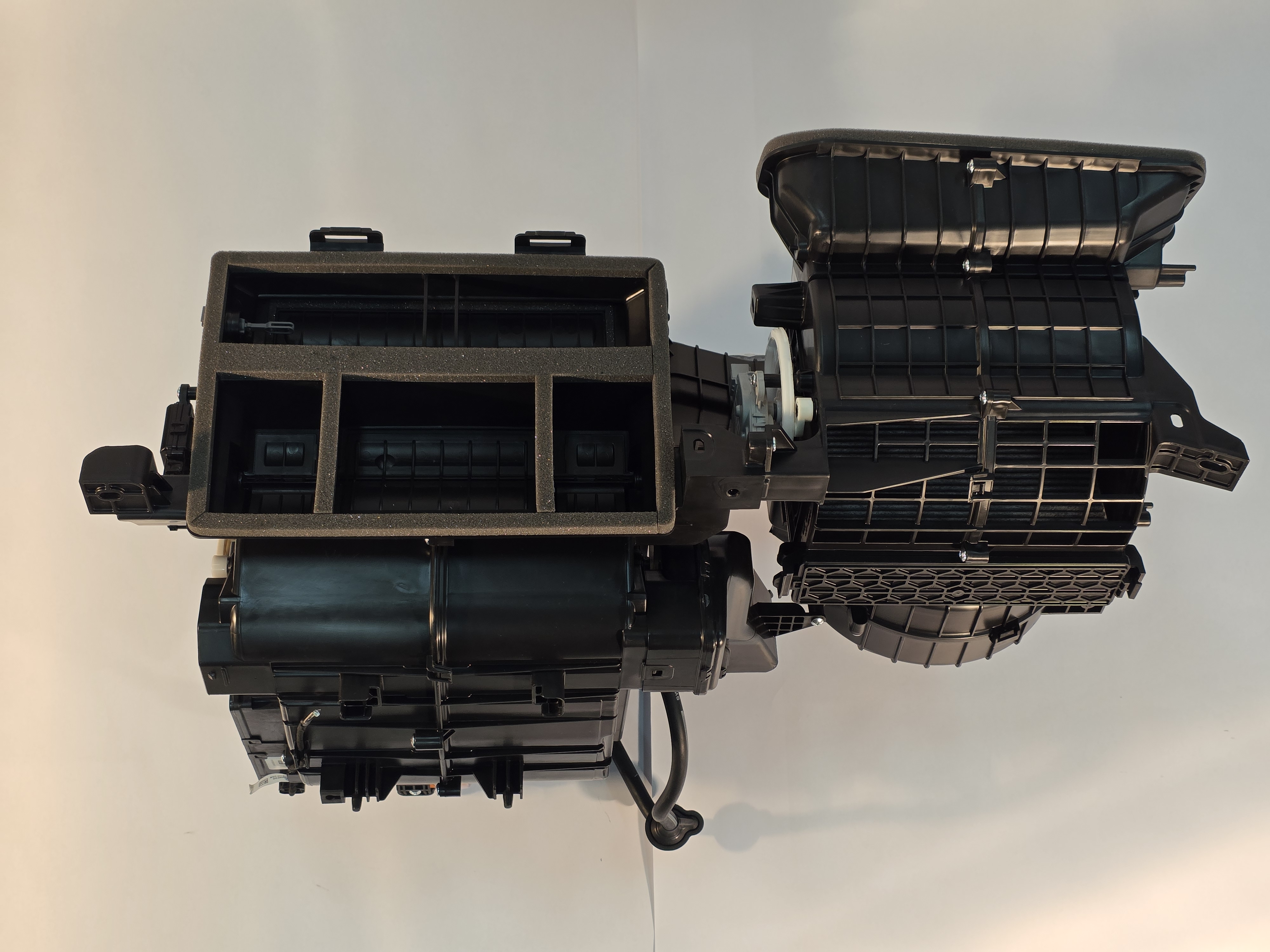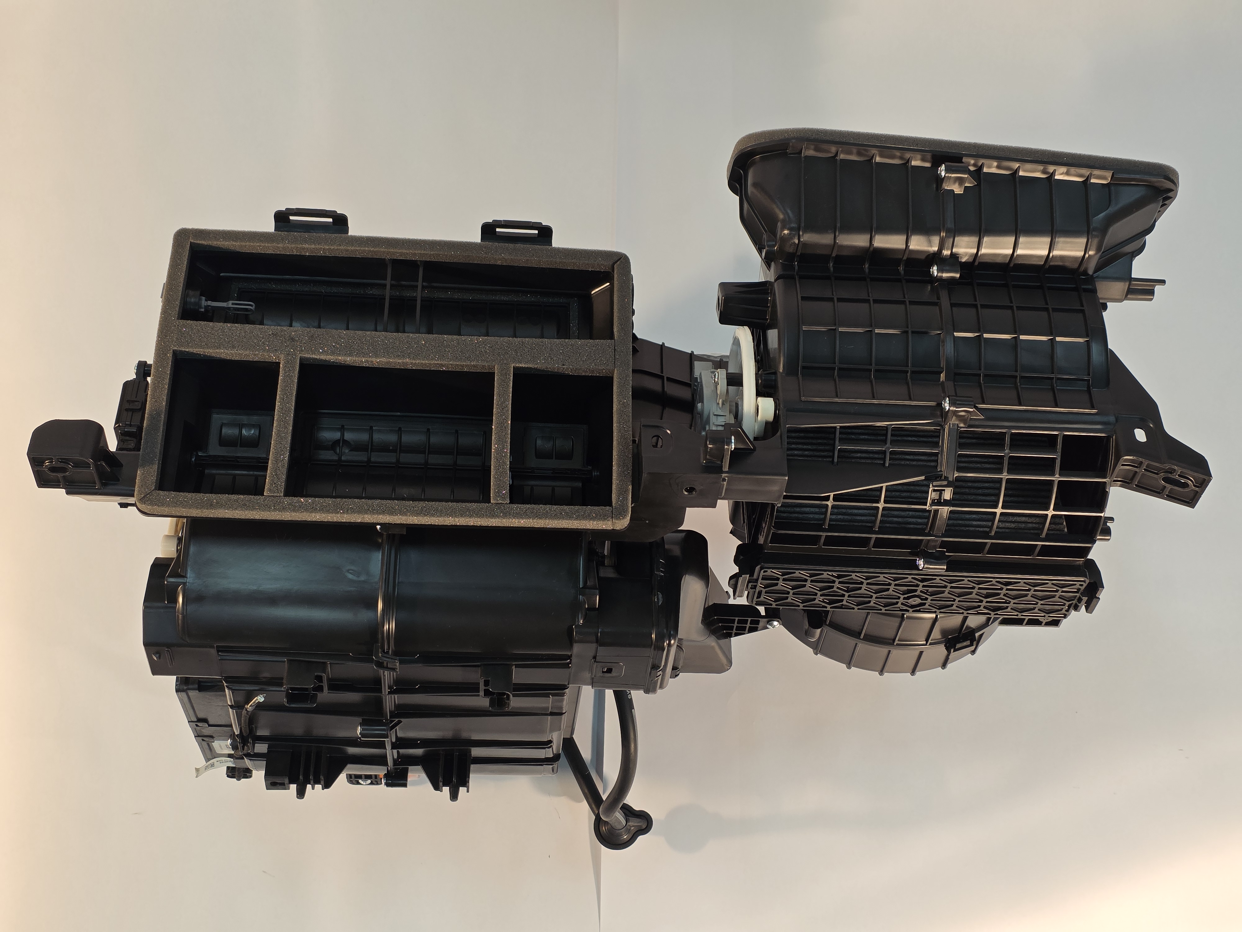 히터, 쿨러, 블로워, 내외기 덕트로 구성되고 차량의 인스트먼트패널내에 탑재 되어 있습니다. 내외기 덕트를 통해서 블로워부에 유입된 공기는 쿨러에서 냉각 제습 되고, 히터에서 재가열 됩니다.HVAC 유닛 내부에서는 차가운 공기와 재가열 된 공기가 각종 DAMPER에 의해 적절한 공기온도로 되어 차 실내로 보내져 쾌적한 온 습도 조건을 만드는 역할을 합니다