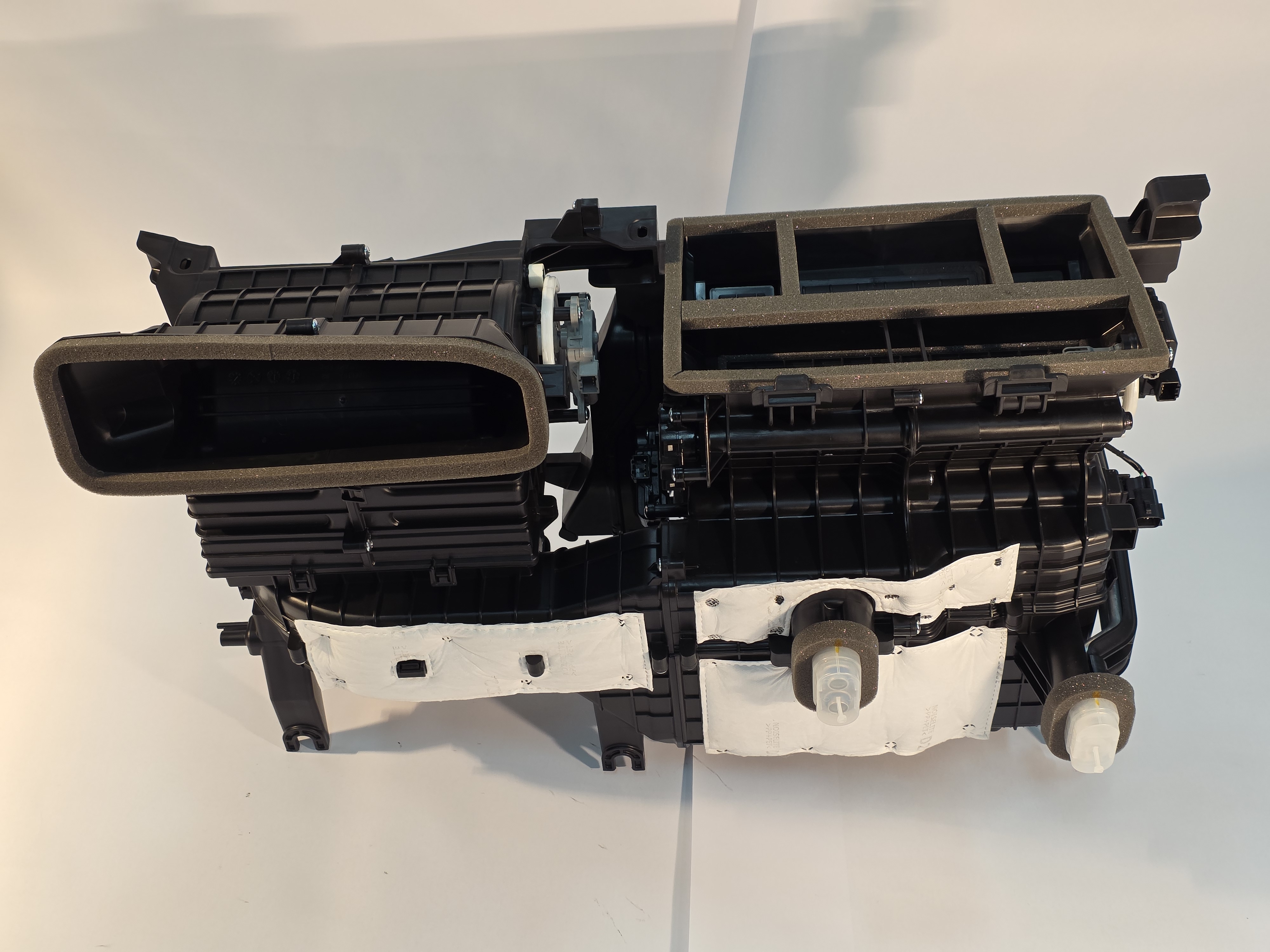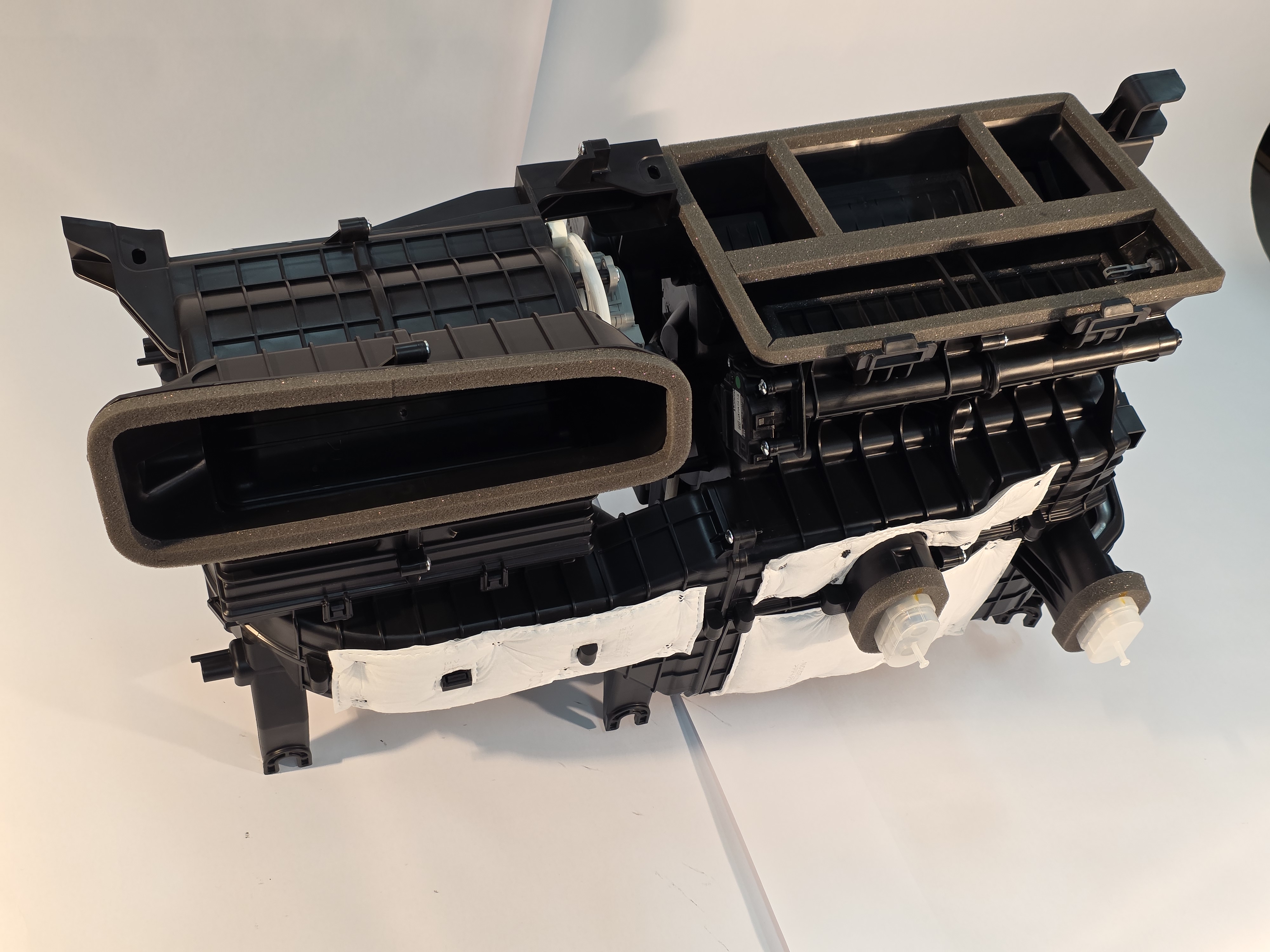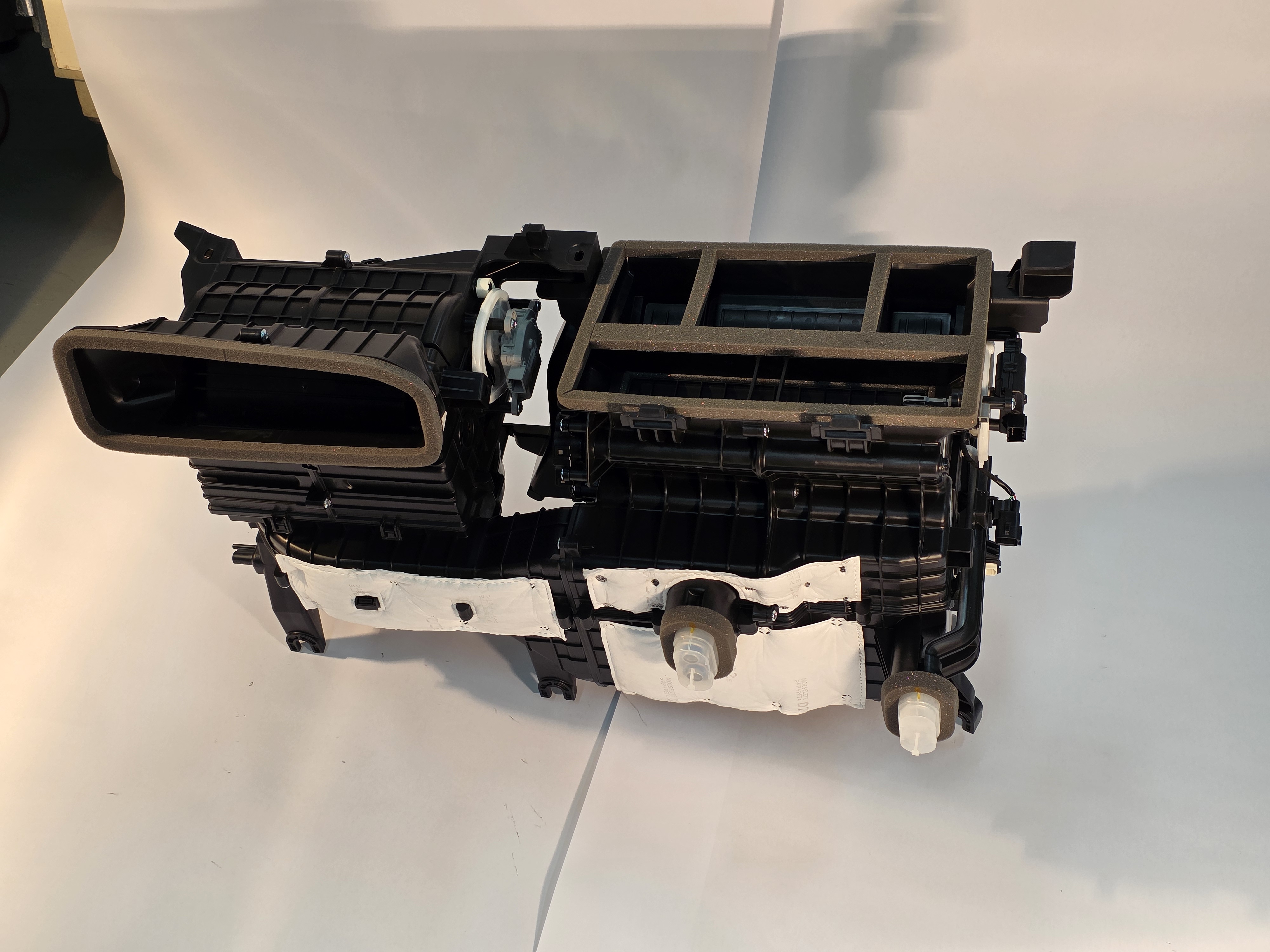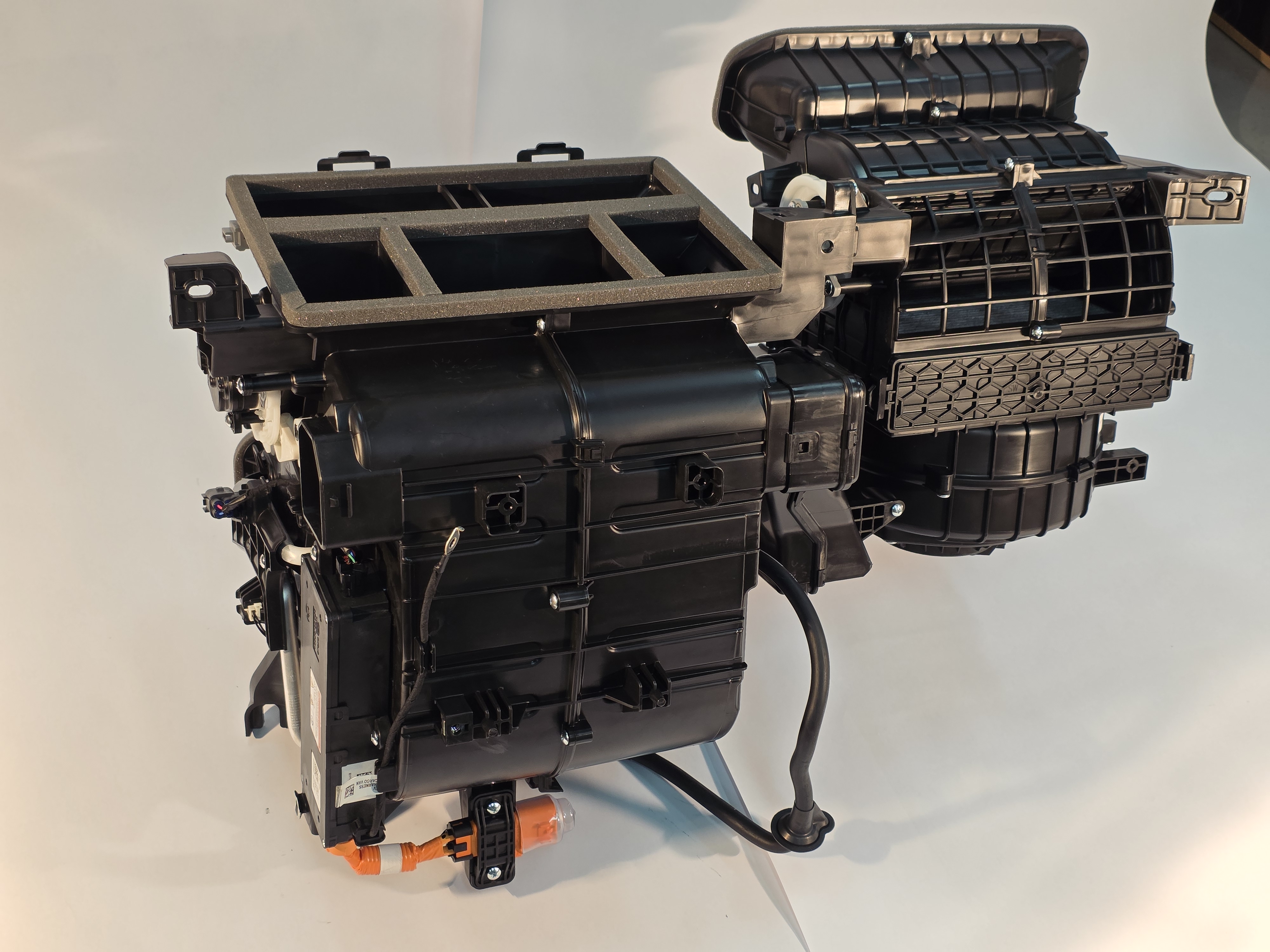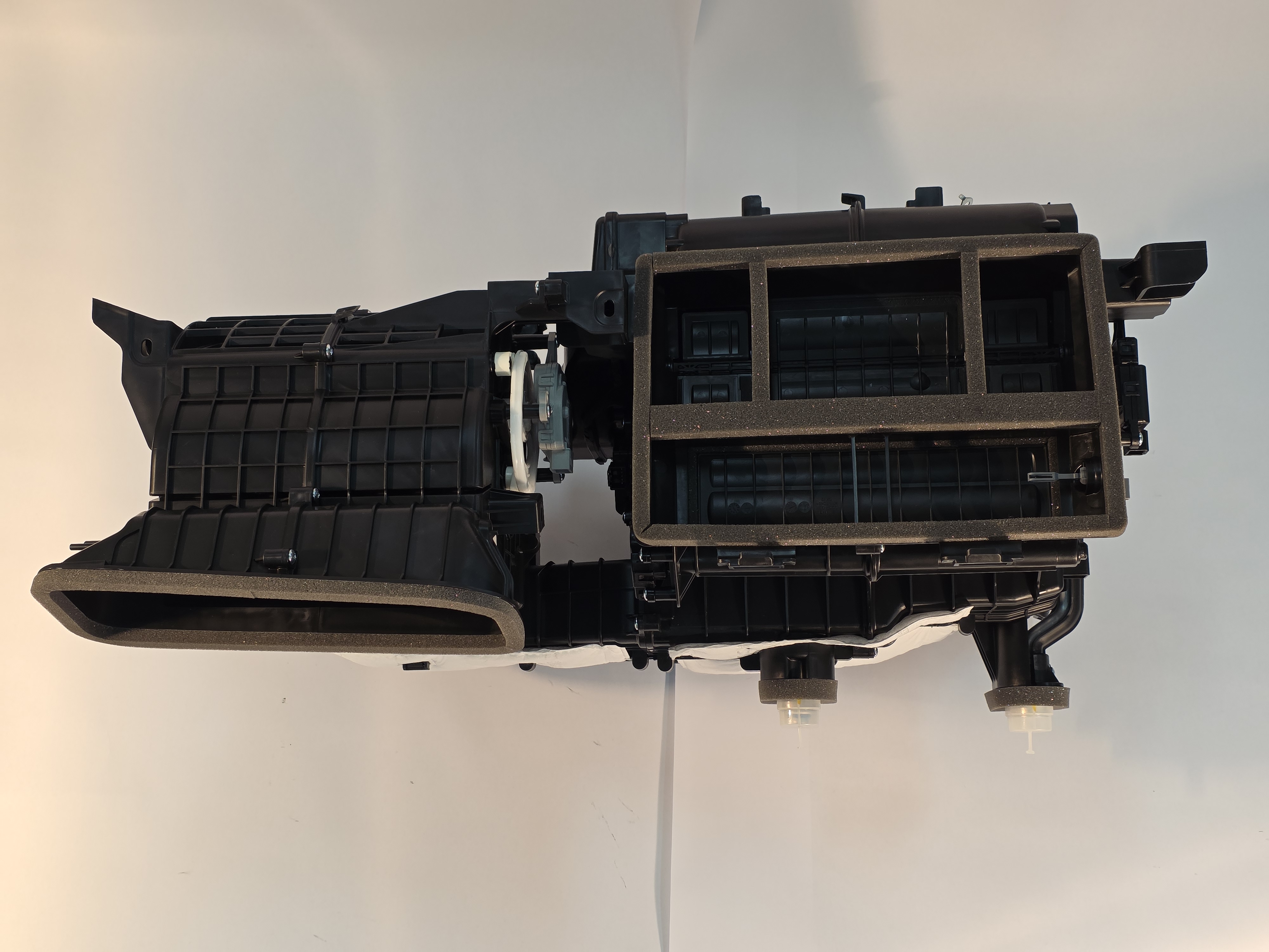히터, 쿨러, 블로워, 내외기 덕트로 구성되고 차량의 인스트먼트패널내에 탑재 되어 있습니다. 내외기 덕트를 통해서 블로워부에 유입된 공기는 쿨러에서 냉각 제습 되고, 히터에서 재가열 됩니다.HVAC 유닛 내부에서는 차가운 공기와 재가열 된 공기가 각종 DAMPER에 의해 적절한 공기온도로 되어 차 실내로 보내져 쾌적한 온 습도 조건을 만드는 역할을 합니다